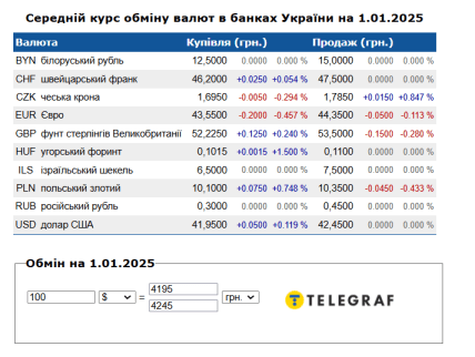 Однак протягом 5 років показники на валютному ринку росли й у січні 2025 року 100 доларів можна було придбати за 42,45 гривні, тобто віддати банку 4245 гривень. Якщо мовиться про обмін доларів на гривню, то за курсом 41,95 гривні особа отримала б 4195 гривень.