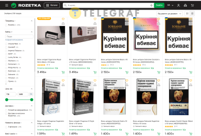 Найвищими ціни на цигарки є на "Rozetka", де, наприклад, блок цигарок Cigaronne Royal Slims та Phantom коштує 3 496 гривень, відповідно одна пачка — майже 350 гривень.