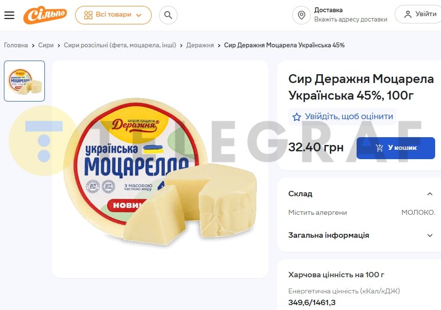 - Сир сулугуні — чудово плавиться, має м’який солонуватий смак і добре підходить для піци та запіканок. Найдешевший сир в Сільпо можна взяти за 34,40 гривень. Ціна актуальна за 100 грамів;