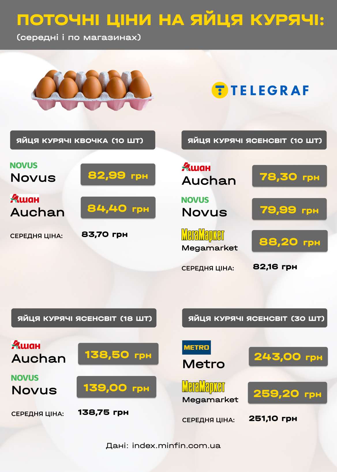 За даними Олега Пендзина, зараз ціна стабілізувалася на рівні близько 80 гривень за десяток і тримається вже близько трьох тижнів. "Вони десь приблизно вже днів 20 стоять на рівні 80 плюс-мінус гривень за десяток", – розповів економіст.