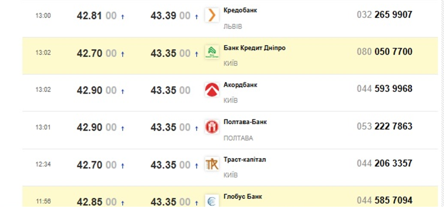 При цьому протягом торгів на основному майданчику міжбанківського валютного ринку (Bloomberg) було пробито новий психологічний рівень і котирування сягали 43,115 грн/$.