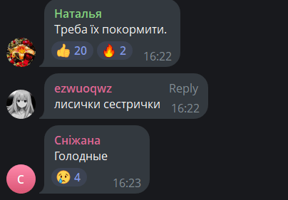 В коментарях люди зазначили, що обидві лисички мають худий та виснажений вигляд, однак як зазначається, у теплу пору року тварини скидають зимове густе хутро, яке більше не потрібне для зігрівання. У цей період шерсть виглядає рідкою, нерівномірною, подекуди облізлою — особливо на боках, спині чи хвості.