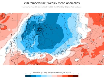 Так, у першій декаді лютого у більшій частині областей, крім південних, знову очікуються морози до -20 °C. З 8-10 лютого морози почнуть поступово слабшати, хоча на північному заході холодна погода, мабуть, протримається майже до кінця місяця.