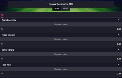 Якщо ж повернутися до реальних фаворитів, то найбільше шансів на отримання індивідуальної нагороди у хавбека "Реала" Джуда Беллінгема. На його можливу перемогу можна поставити з коефіцієнтом 5,0. Слідом за ним розташувалися форвард ПСЖ Кіліан Мбаппе з коефіцієнтом 5,50, а також нападник "Манчестер Сіті" Ерлінг Холанд з коефіцієнтом 6,00.