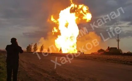 У Харківській області, за попередніми даними, вибухнув трубопровід із газом. Стовп вогню досягає 70 метрів заввишки.