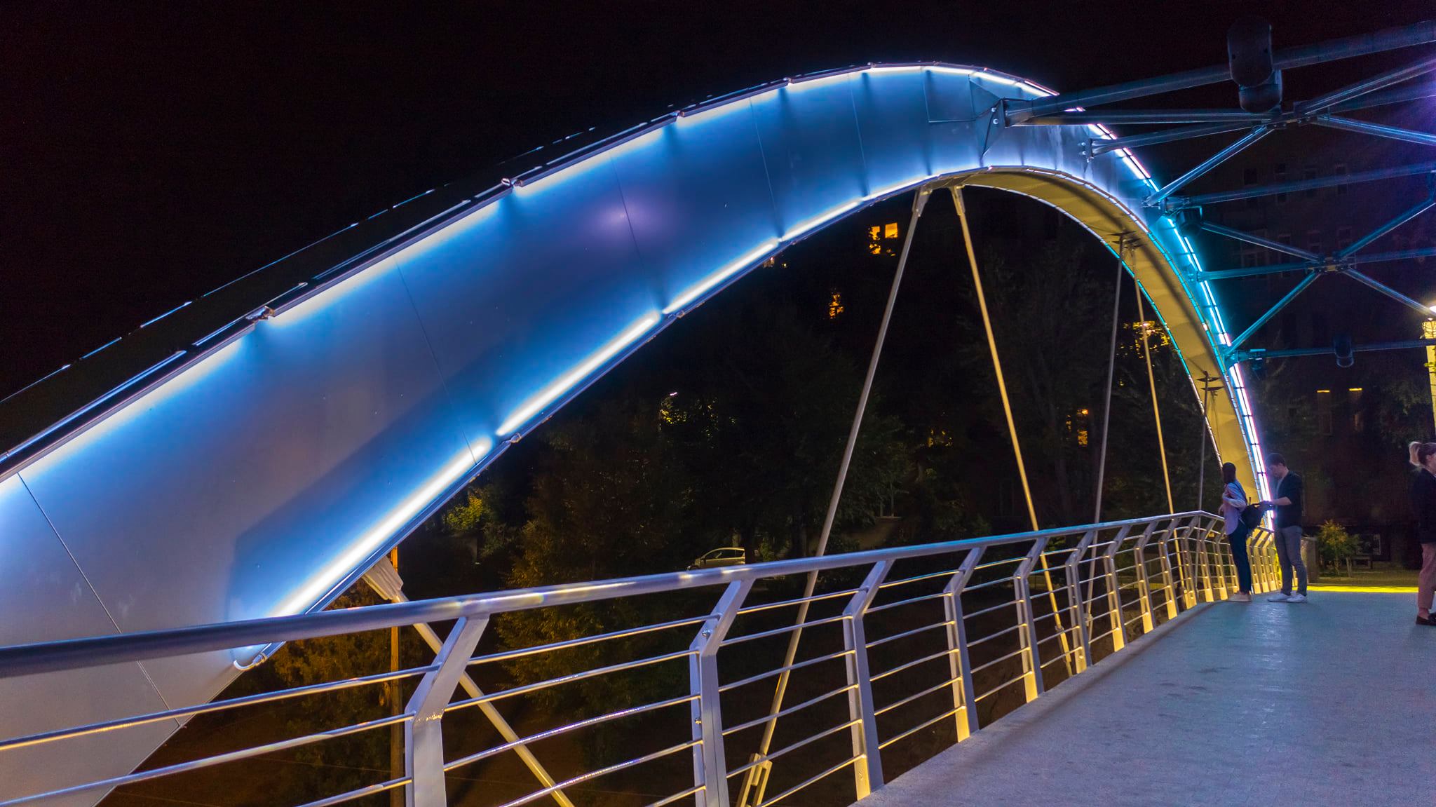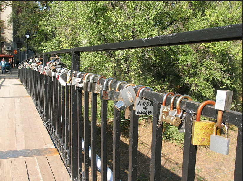 Збудували цей пішохідний міст ще у 1952 році. В кінці 2000-х років закохані почали вішати на ньому замки, як символі вічності кохання. Місце було достатньо тихе та усамітнене, щоб молоді пари залюбки тут прогулювались. З 2010 року на мосту встановили підсвітку, але замки залишили.
