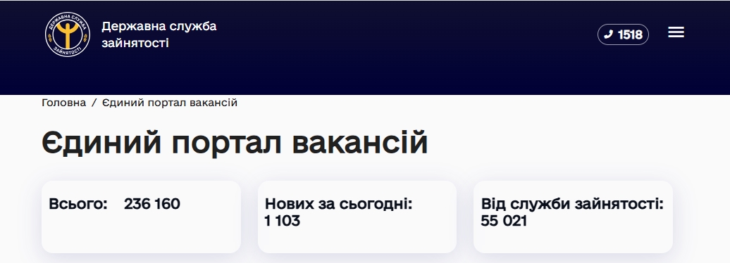 Додамо, що згідно з даними Державної служби зайнятості, станом на 4 грудня 2025 року, на Єдиному порталі вакансій зареєстровано 236 160 пропозицій. З них, лише за поточний день, опубліковано 1103 вакансії.