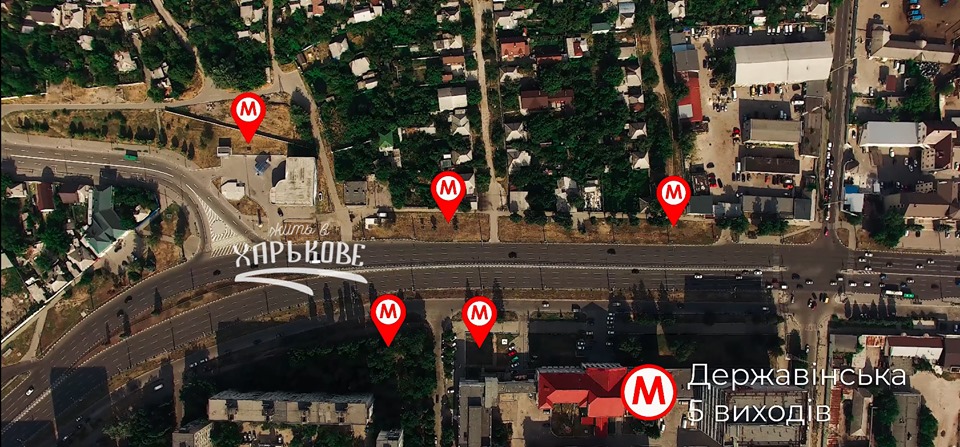Як раніше писали місцеві ЗМІ, зі станції "Державінська" заплановано п’ять виходів, чотири з яких розташовані ближче до зупинки громадського транспорту "М’ясокомбінат", а ще один – за поворотом до стадіону "Металіст".
