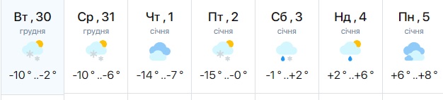 "Найбільш холодними стануть 25 та 26 грудня та передноворічні дні з 29 по 31 грудня. Крім того, розсіється пасмурність, що вкривала Україну майже весь грудень", — сказав Кібальчич.