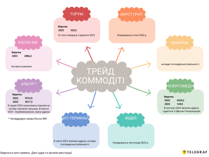 "Ексон ЮК", який ще два роки тому був головним трейдером групи (в 2022 році виручка цієї компанії склала 9,3 млрд грн), в жовтні 2023 року змінив назву на ТОВ "Альтаір" і адресу (за новою, як вказують податківці, він фактично не перебуває). А в грудні 2023 року залишився без ліцензії на торгівлю пальним, яка була анульована. Скоріш за все, ця компанія приєднається до своїх збанкрутілих колег.