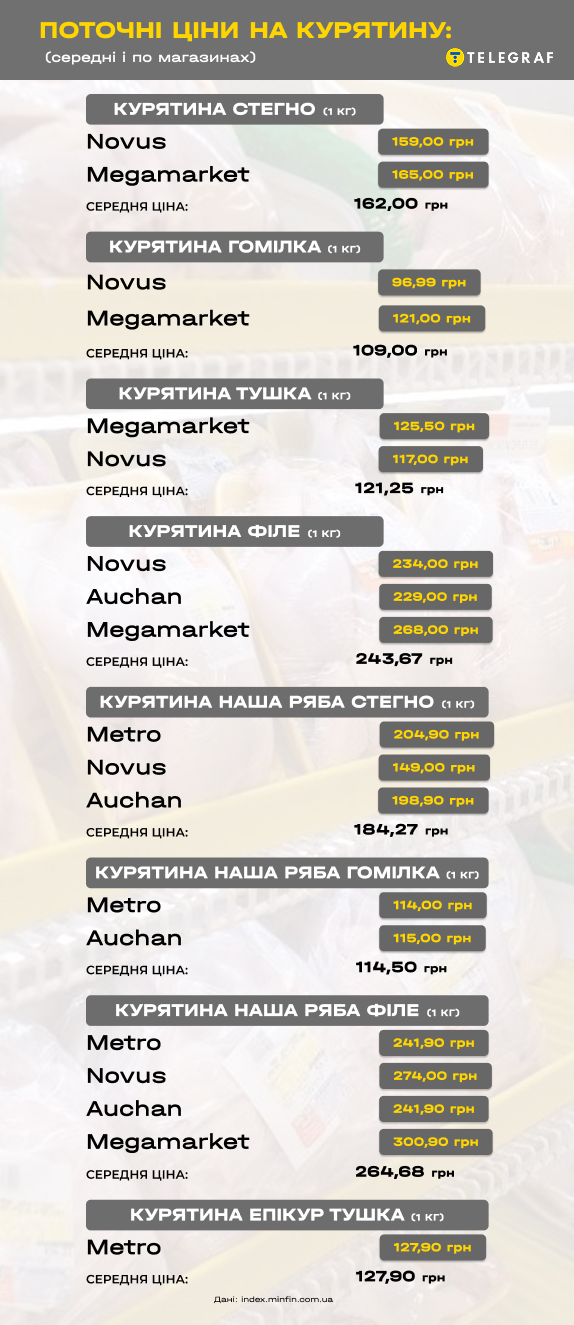 "Телеграф" з'ясував у виробників м'яса птиці, які фактори насправді впливають на ціноутворення курятини в Україні, чому блекаути не спричинять різкого подорожчання і чи варто українцям скуповувати м'ясо про запас.