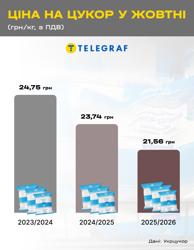 Найбільша проблема для цукровиків — це значне зниження цін. Якщо в серпні середня гуртова ціна становила 22,99 гривні за кілограм, то зараз вона просіла до 20 гривень. Для порівняння, у листопаді минулого року цукор коштував 23,63 гривні за кіло.