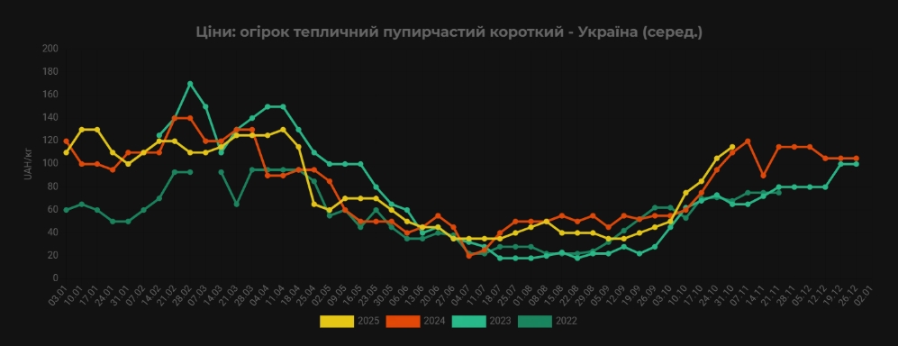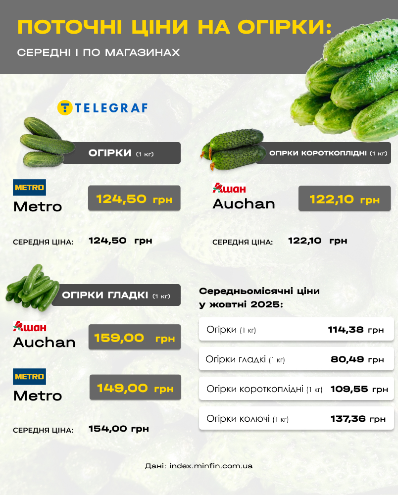 При цьому попри певний ризик дефіциту та подальшого здорожчання овочу висновок експертів однозначний: робити великі запаси огірків недоцільно. Продукт швидко псується, а імпортна заміна забезпечить наявність овочів на полицях, хоча й за вищою ціною. Найвищі ціни слід чекати під Новий рік та Різдво – саме тоді попит традиційно зростає.