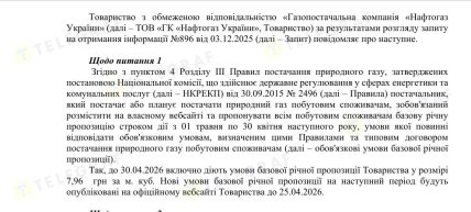 До 30.04.2026 включно діють умови базової річної пропозиції Товариства у розмірі 7,96 грн за м. куб.