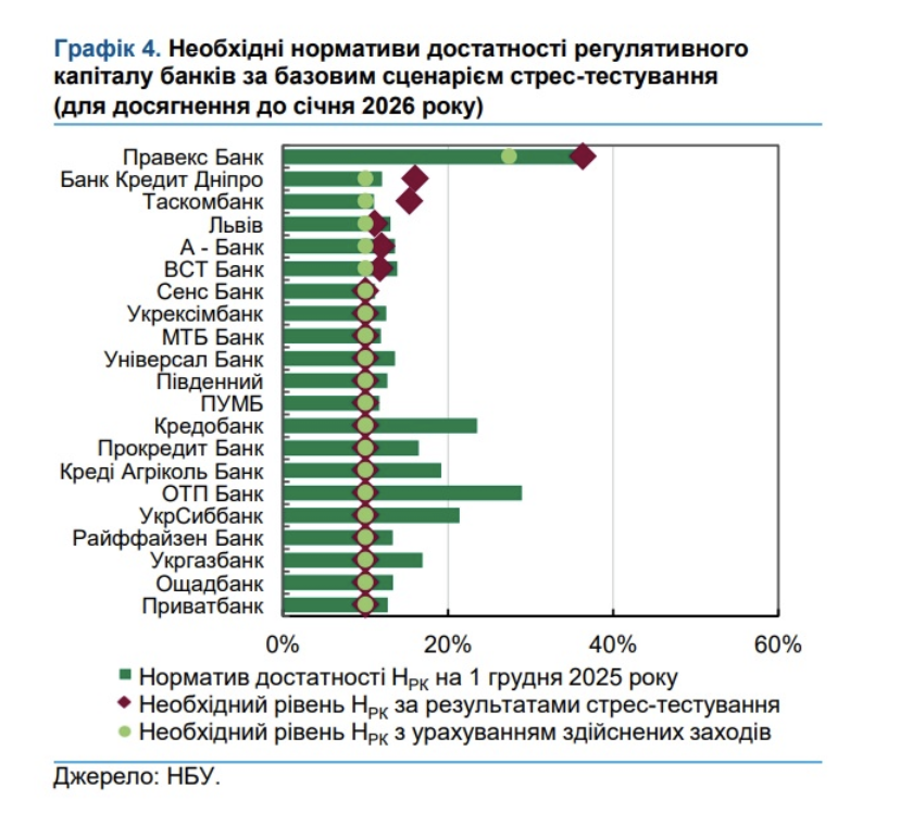 Нацбанк у звіті зазначив, що вимоги за першим (базовим) сценарієм будуть виконані вже цього тижня, тобто до кінця 2025 року. А за другим — до жовтня 2026-го.
