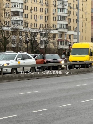 На місці ДТП утворився затор. Про це повідомили очевидці у Телеграм-каналі "Життя Оболонь Київ".
