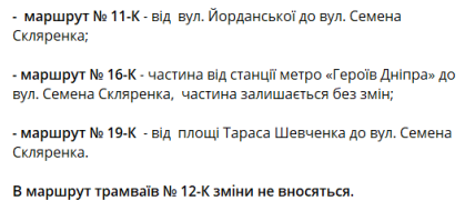 У зв’язку з цим з 24 лютого до закінчення руху 25 лютого рух трамваїв буде організовано за такими маршрутами: