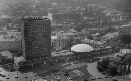 Знаменита "літаюча тарілка" була побудована у Києві в 1971 році, як частина Інституту науково-технічної та економічної інформації. Таке оригінальне рішення було ухвалено у зв’язку з тим, що під будівництво інституту було виділено досить вузький простір. Таким чином "тарілка" стала додатковою будівлею поверх звичайного, не заважаючи при цьому пішоходам.