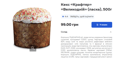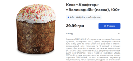 У "Сільпо" ціни стартують від 29.99 грн за паску 100 грамів. За великодній кекс вагою 300 грамів прийдеться віддати 74.99 грн.