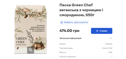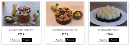 Також є безглютенові паски вартістю 870 грн за 900 грамів і великодній торт за 1 200 грн.