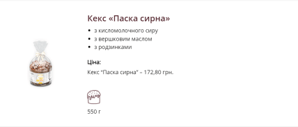 Також можна придбати сирну паску вагою 550 грамів за 172,8 грн.