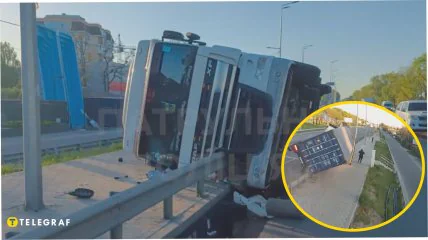 У вівторок, 30 квітня, у Солом’янському районі Києва сталася аварія за участю вантажного автомобіля DAF. Як виявилося, водій перевищив швидкість, не впорався з керуванням та перекинувся на тротуар, де у цей момент проходили люди.