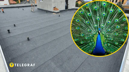 У Києві на даху будинку помітили павича. Красень розпустив хвіст і повільно кружляв.