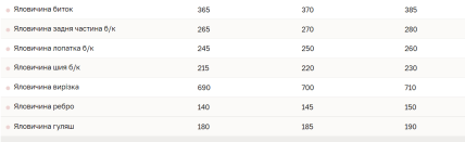 М'ясо з шиї коштує 220 грн за кг. Яловичина ребро продають по 145 грн/кг. Яловичина вирізка в середньому коштує 700 грн за кг.