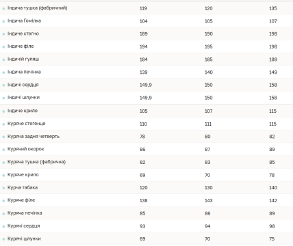 Тушка курки коштує в середньому 83 грн за кг. Куряче стегенце — 111 грн за кг. Куряче крило по 70 грн за кг.
