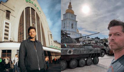 У вівторок, 21 травня, до Києва приїхав актор і режисер Міша Коллінз, який став мега-відомим завдяки ролі ангела Кастіеля у серіалі "Надприродне". Він також є послом президентської ініціативи UNITED24 та підтримує Україну з перших днів повномасштабного вторгнення РФ.