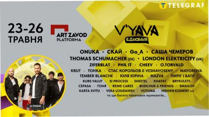 Також на V`YAVA виступлять: ONUKA, Go_A, СКАЙ, Саша Чемеров, О. TORVALD, ZIFERBLAT, CHEEV, Phill It, KRUT, Пиріг та Батиг, Стас Корольов & Vesnavoseny, ТОНКА, MAYOROVA, TEMBER BLANCHE, DIMA PROKOPOV Kurs Valut, Si Process, NAZVA, KHAYAT, Renie Cares, ГОНЯ, Sheetel, Feels, Gorim! MC Реп, Budchuk & Friends, KARTA SVITU та інші талановиті артисти.
