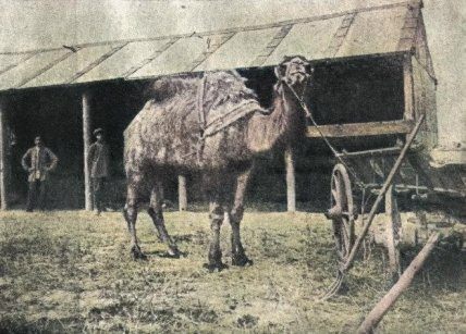 На ще одному фото можна побачити, як верблюд використовується в якості тяглової сили і перевозить вантажі при відділенні всеросійського земського союзу в Святошин.