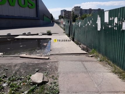 Крім того, як повідомляють місцеві, деякі ділянки поблизу недобуду на Данченка після дощів сильно підтоплює: поряд з покинутим будмайданчиком люди пересуваються по плитам через підтоплення, що створює додаткову небезпеку.