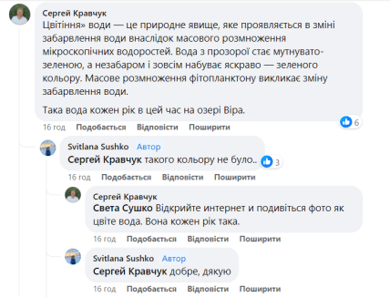 "Така вода кожен рік в цей час на озері Віра", — пише читач групи.