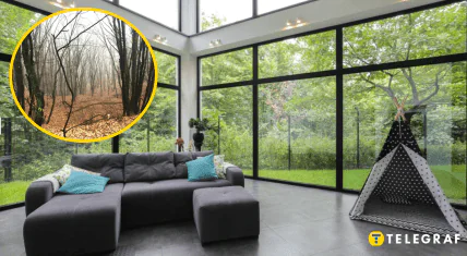 В оголошенні зазначено, що садиба стоїть на абсолютно унікальній ділянці природного походження та її оточує ліс віком понад 100 років, в якому зростає 23 види дерев.