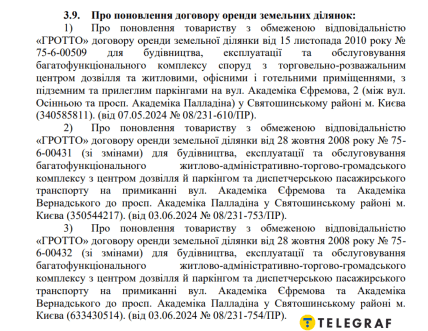 Також Київрада прийняла рішення поновити договір оренди земельної ділянки з ТОВ "Гротто" на проспекті Академіка Палладіна. До цього теж може бути причетний Алієв.