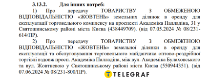 Загалом на порядок денний винесли понад сотню пунктів. Один із цікавих питань, за яке проголосували депутати, стала передача ТОВ "Жовтень" земельних ділянок в оренду для експлуатації торговельного комплексу на проспекті Академіка Палладіна.