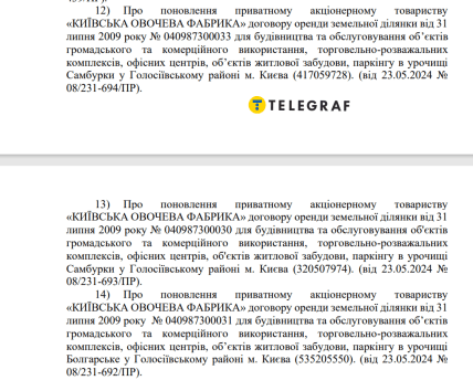 Під забудову передають десятки гектарів колишньої овочевої фабрики. Депутати прийняли рішення про поновлення ПАТ "Київська овочева фабрика" договору оренди земельної ділянки "для будівництва та обслуговування об'єктів громадського та комерційного використання, торговельно-розважальних комплексів, офісних центрів, об'єктів житлової забудови, паркінгу" в урочищі Самбурки, що в Голосіївському районі.
