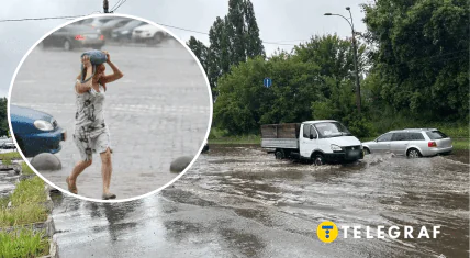 Місцеві розповідають, що у дощ завжди відкривається гейзер на перехресті. У мережі повідомляють, що води там по коліно і навіть більше.