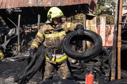 Як повідомили в Головному управлінні ДСНС України у Києві, повідомлення про пожежу на вулиці Кирилівській надійшло о 13:43. А о 14:25 загоряння у павільйоні шиномонтажу з подальшим розповсюдженням на автомобільні шини було ліквідовано на площі 50 кв. м.