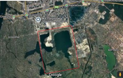 Коли мова йде про загальну концепцію екологічного парку на Осокорках, мають на увазі територію в м. Києві понад 550 гектарів. Але розмір спірних ділянок, щодо яких наразі у гордіїв вузол сплелися інтереси екологів, забудовника "Столиця груп", містян та влади, становить усього 176 га. Якщо дивитися на Київ з супутника, межі спірної території виглядають приблизно так (червоний прямокутник на світлині):
