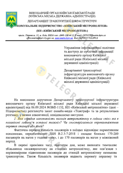 5 вересня 2024 року, коли тривога у столиці тривала понад 9 годин, метрополітен перевіз 706 тисяч пасажирів. Це трохи перевищує середньодобовий показник серпня 2024 року — 695 тисяч.