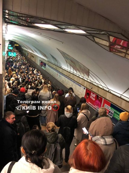 У четвер, 7 листопада, через тривалу повітряну тривогу та великі інтервали між поїздами в київському метро зібралися сотні пасажирів. На декількох станціях виникла тиснява.