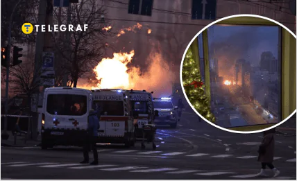 У мережі TikTok відома блогерка з ніком katiboooooooo виклала відео, на якому з квартири, де вже стоїть різдвяна ялинка, видно як горять автівки після удару майже по центру столиці.