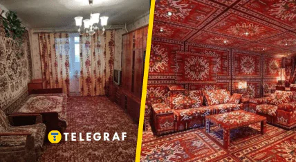 Щоправда, на фото кімната виглядає максимально дивно. Усі поверхні там вкриті килимами.