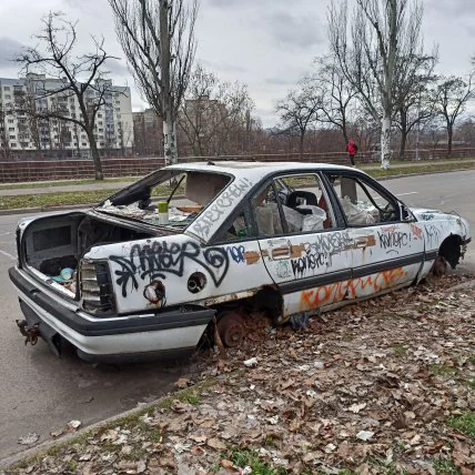 У Києві покинутий автомобіль "мандрує" різними вулицями і обростає своєю історією. Прибирати його комунальники особливо не поспішають.