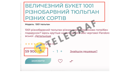 В одній із квіткових крамниць столиці з’явився унікальний букет із 1001 різнобарвного тюльпана різних сортів. Його вартість — 59 900 гривень, тобто одна квітка коштує 59,84 гривні.