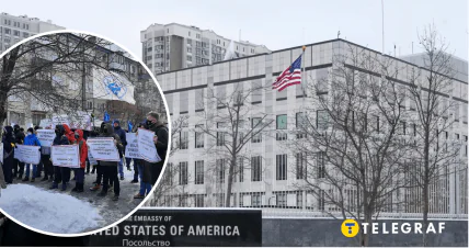 Біля посольства Сполучених Штатів Америки у Києві відбувається акція протесту проти висловлювань та позиції Дональда Трампа щодо України. Учасники пікету звинувачують президента штатів у просуванні інтересів Росії та вбачають у його риториці загрозу для українського суверенітету.