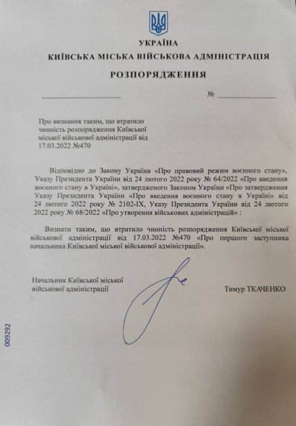 Тимур Ткаченко додав фото розпорядження.