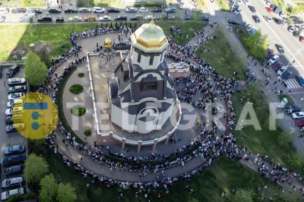 Як видно на знімках з місця, до храму прийшло більше сотні жителів, багато з них були з дітьми та навіть з домашніми вихованцями.